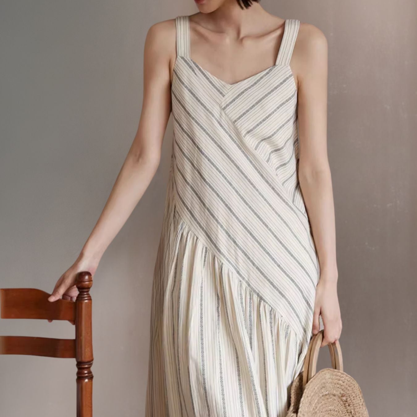 繊細な織り柄のストライプを立体的に配置したワンピース。