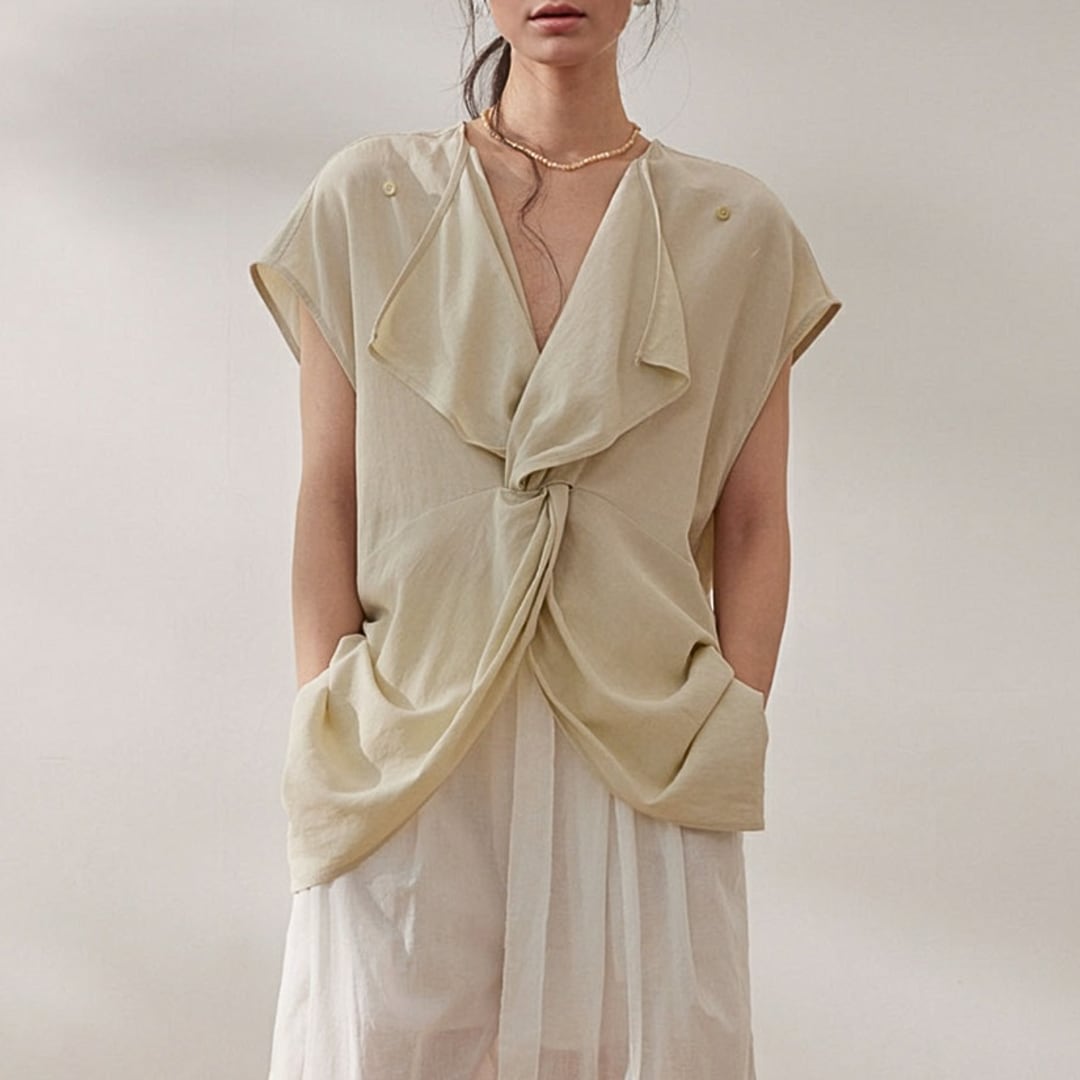 さらりとした素材感で、構築的なフォルムと快適な着心地を両立した一枚です。